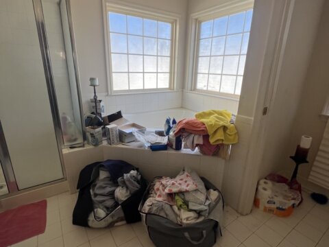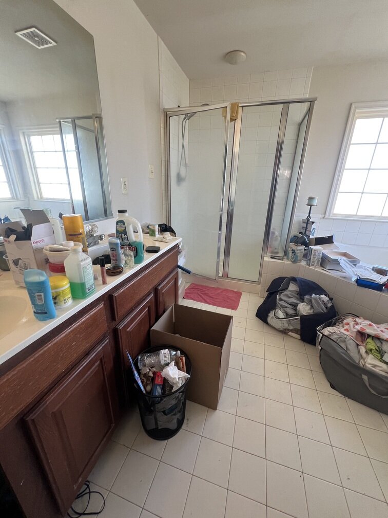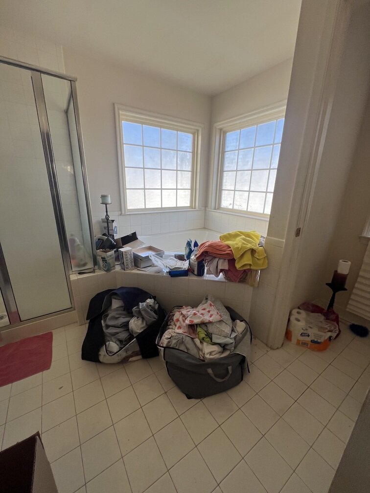 - Primary suite bath: double vanity + separate shower + soaking tub with windows. Strong retail setup once refreshed.