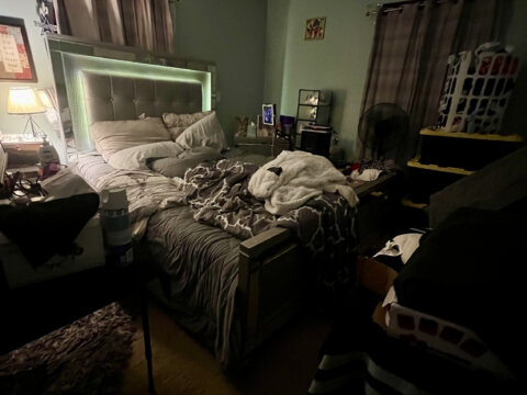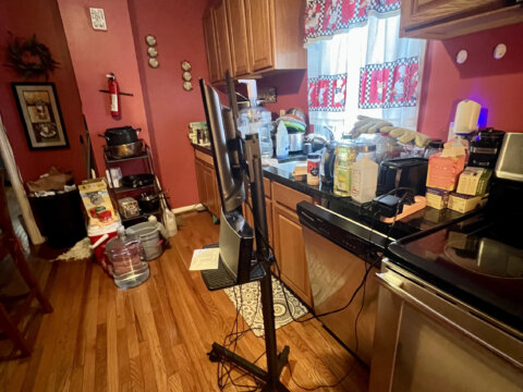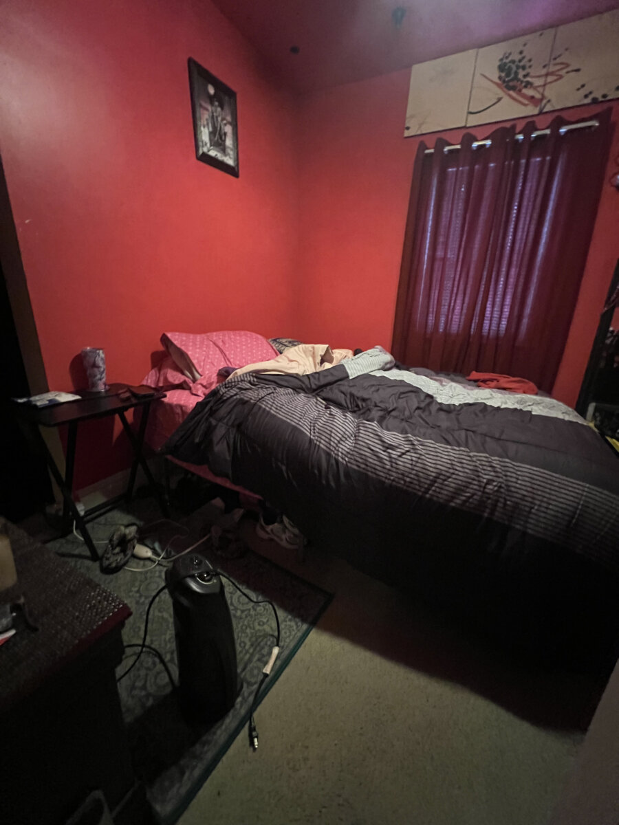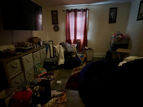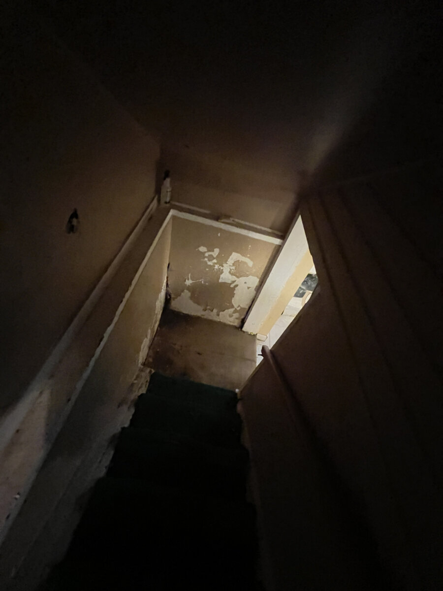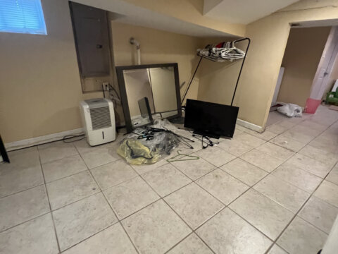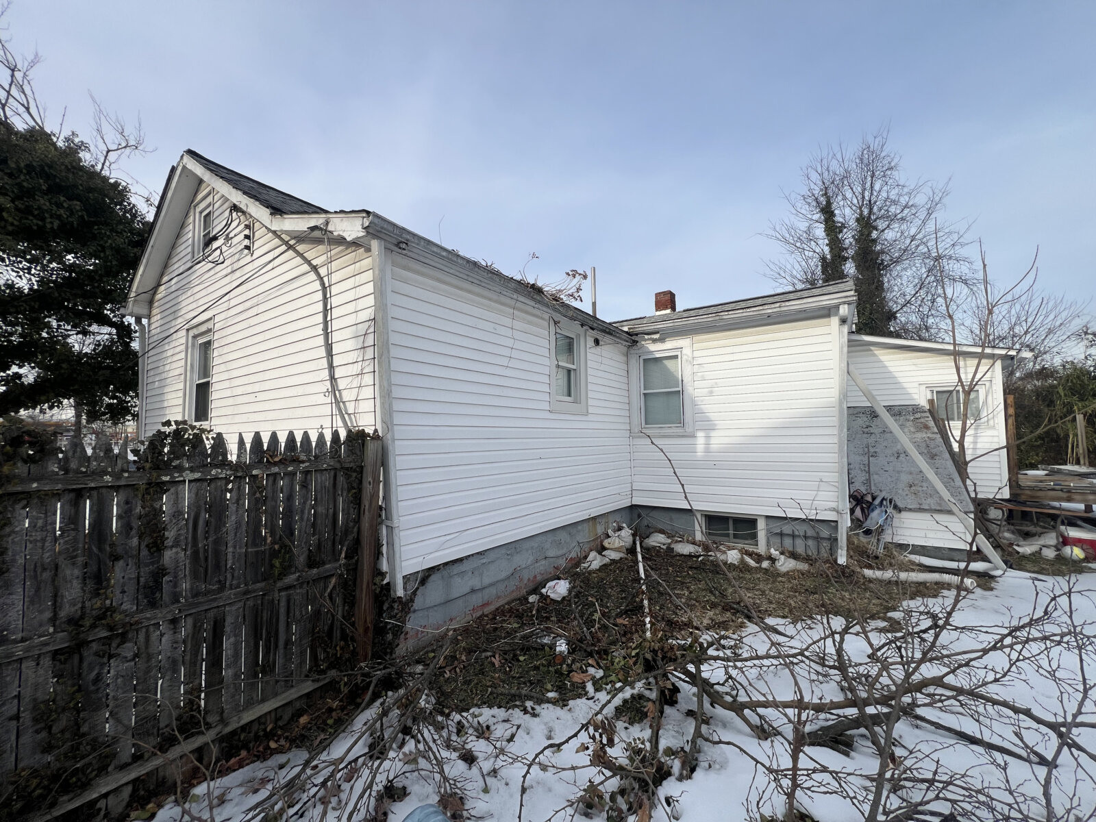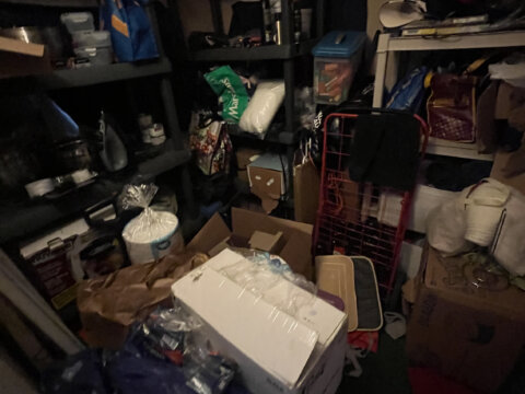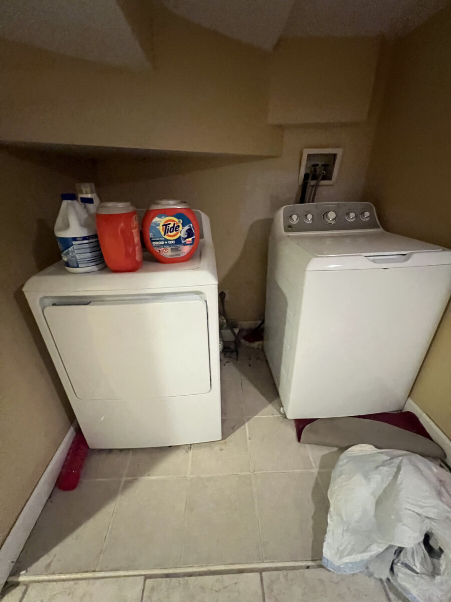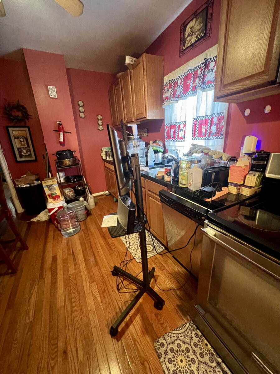 - Main level: hardwood floors in primary living areas; cluttered but usable layout once cleared.