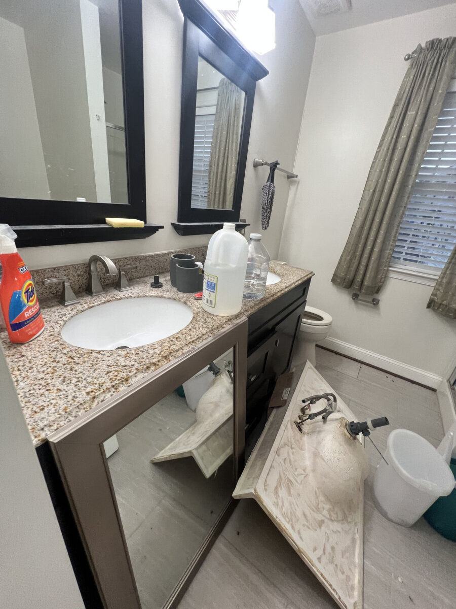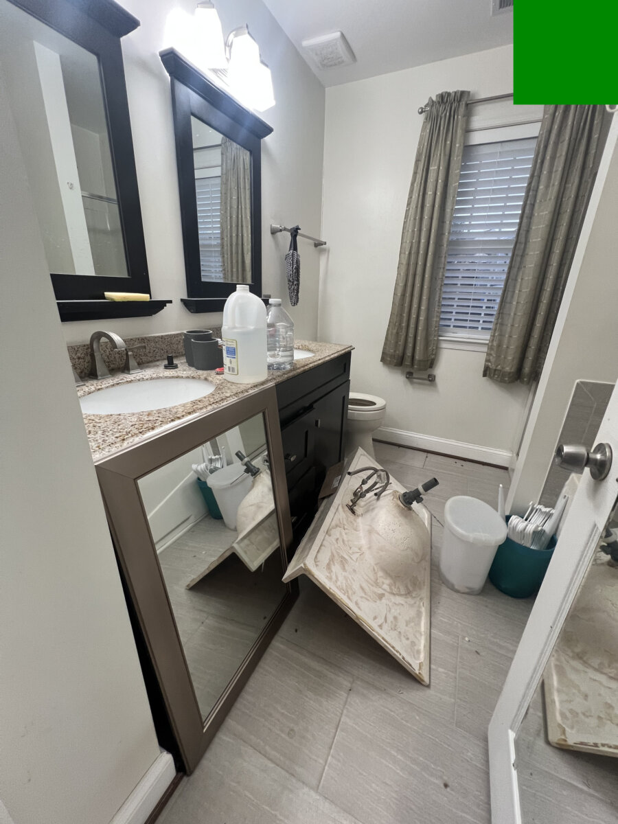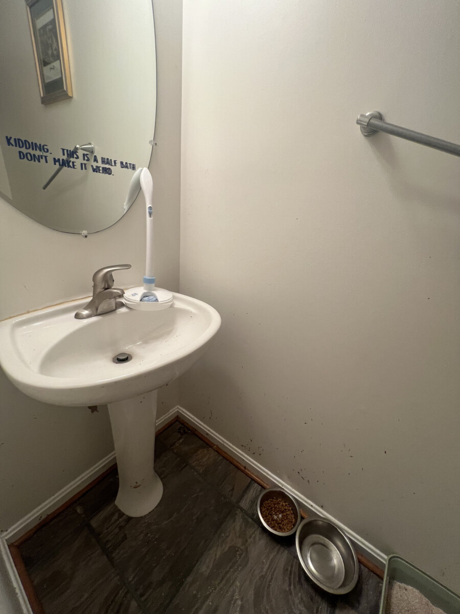 - One full bath needs finish/repair (vanity top/mirror staged)