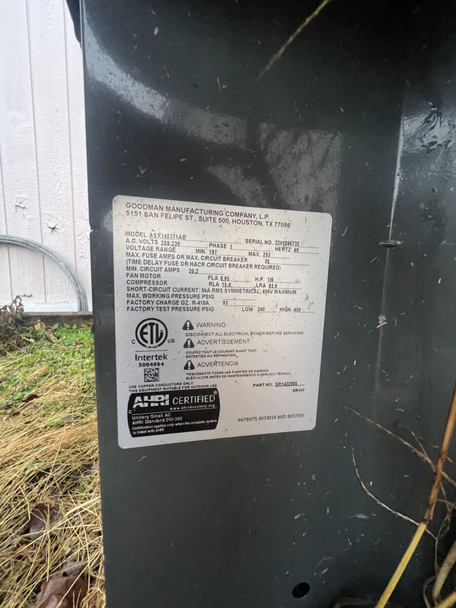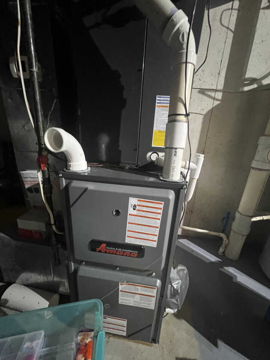 - Newer HVAC equipment shown (Amana/Goodman)