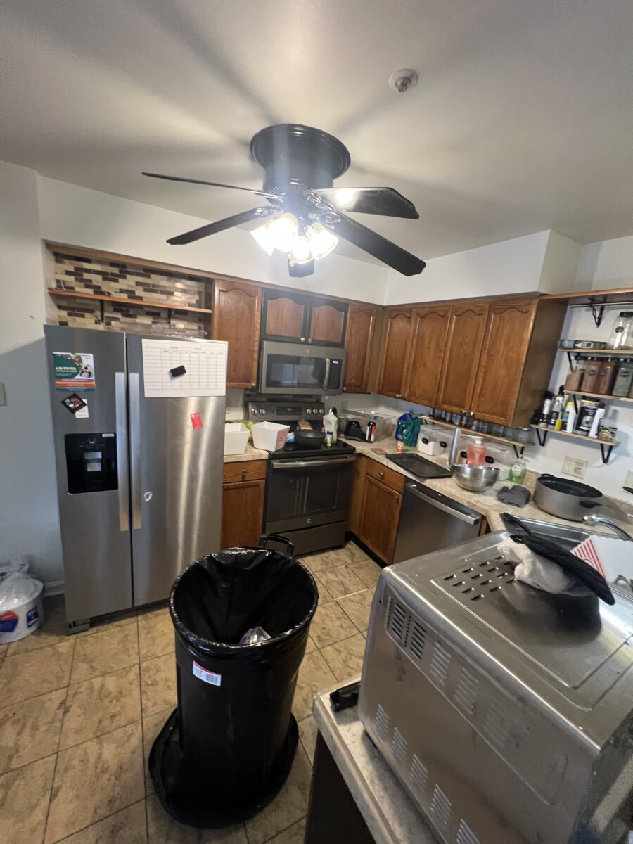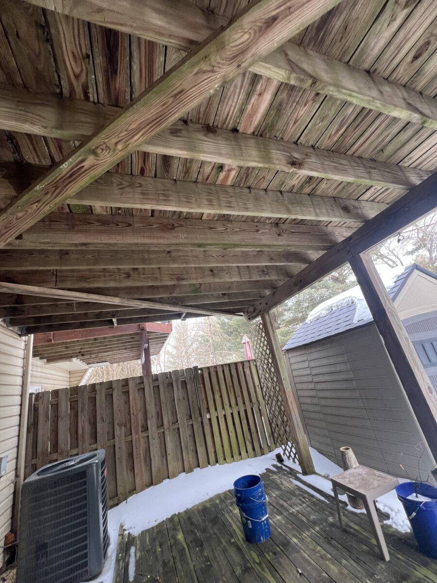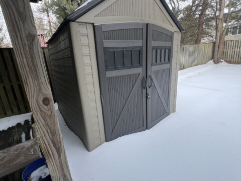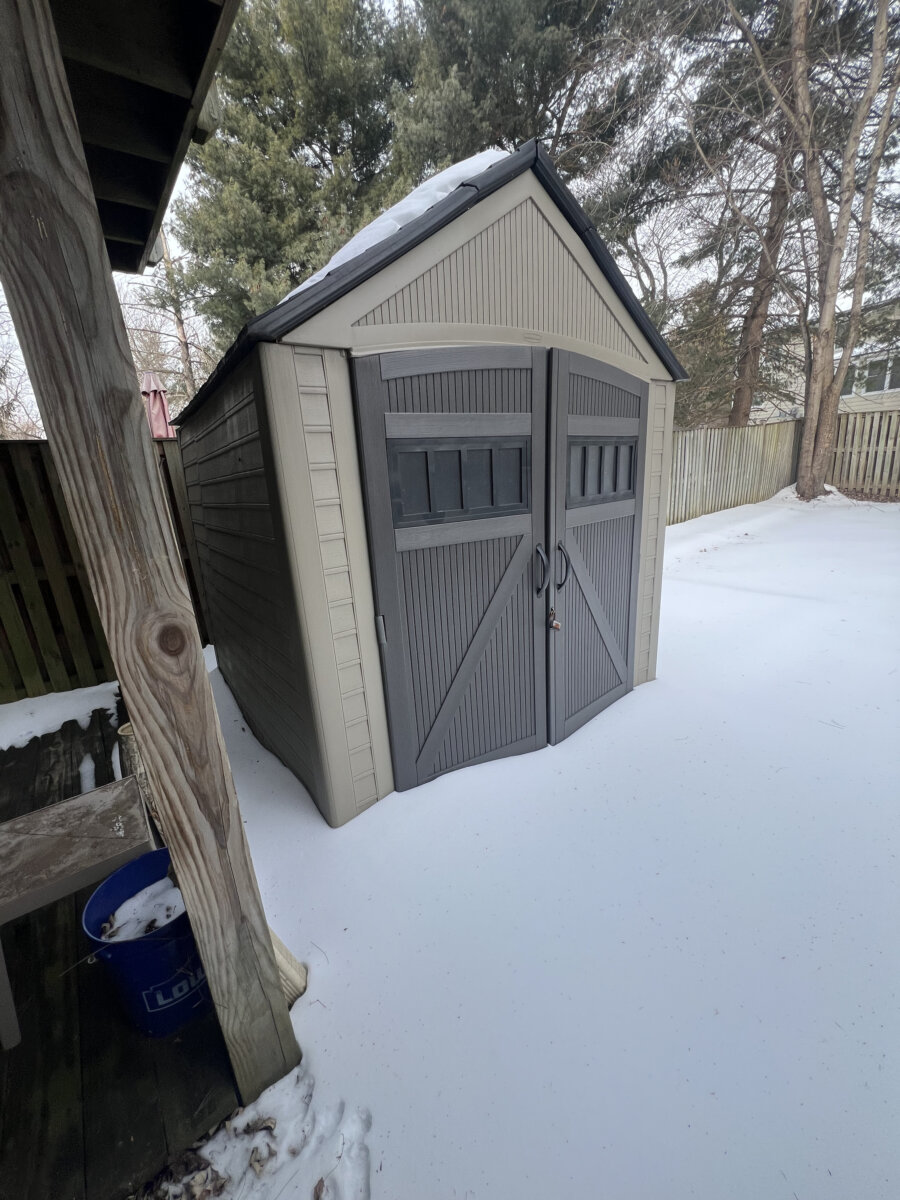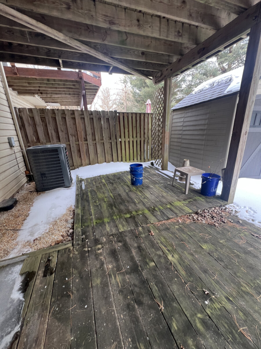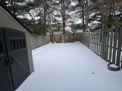 - Exterior / yard: fenced backyard, shed, built-in fire pit, solid deck setup